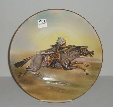 Hand painted Nippon raised design Indian on horse - 11" round Hand painted Nippon raised design Indian on horse - 11" round