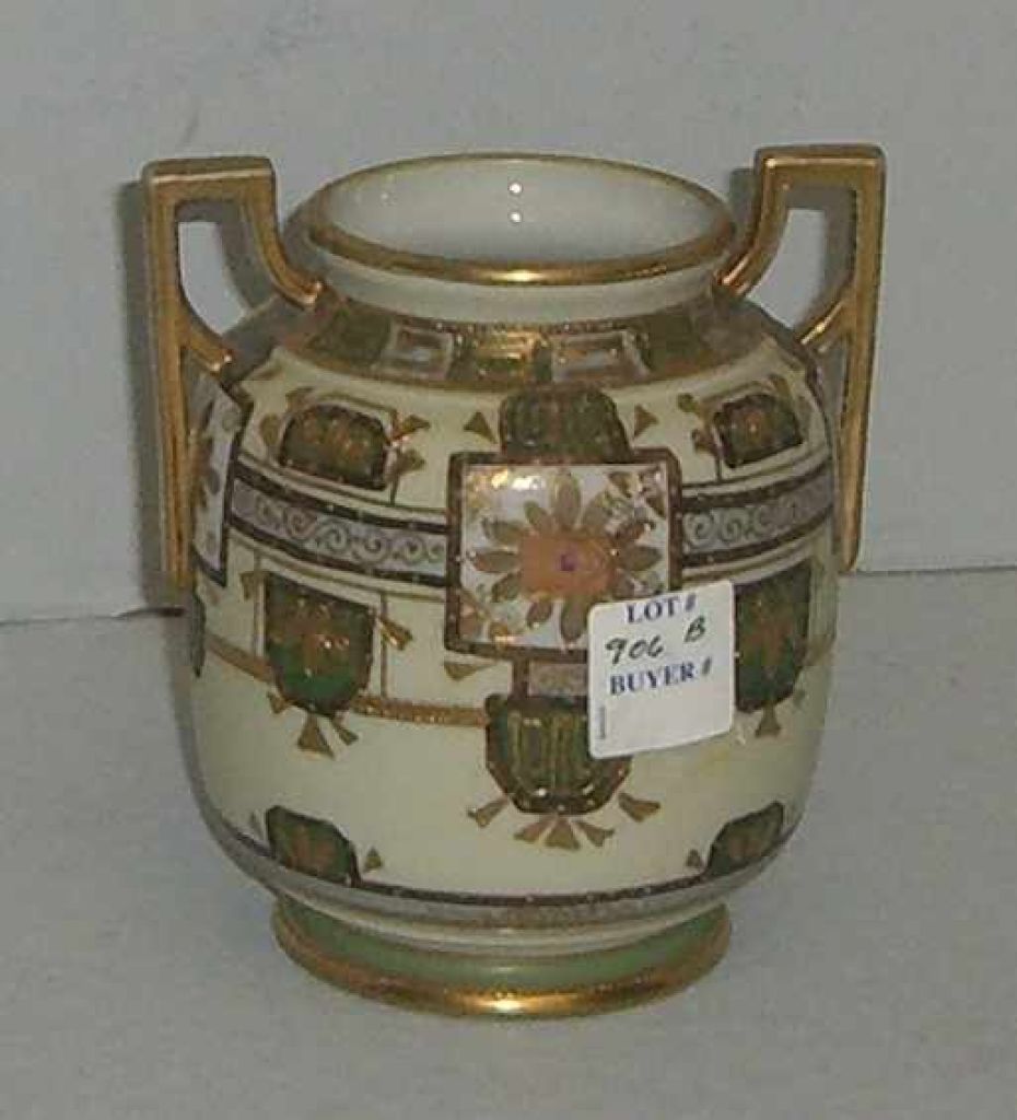 Nippon handled vase with gilt beading & floral d Nippon handled vase with gilt beading & floral d