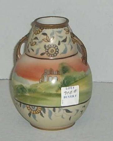 Nippon double handled vase with castle scene - 5" tall Nippon double handled vase with castle scene - 5" tall