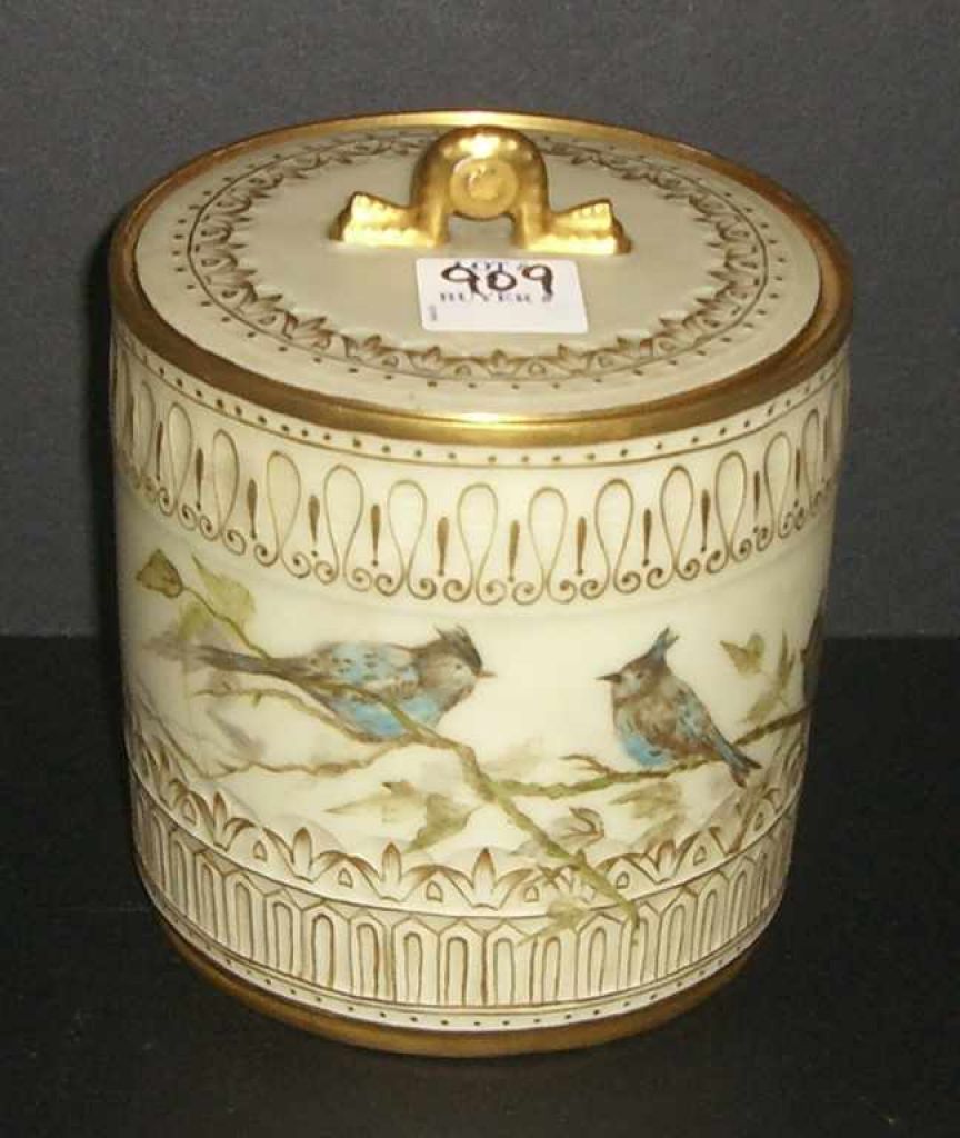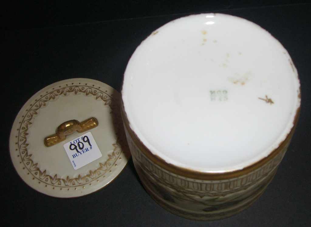 4050 Gold & white round cracker jar with lid