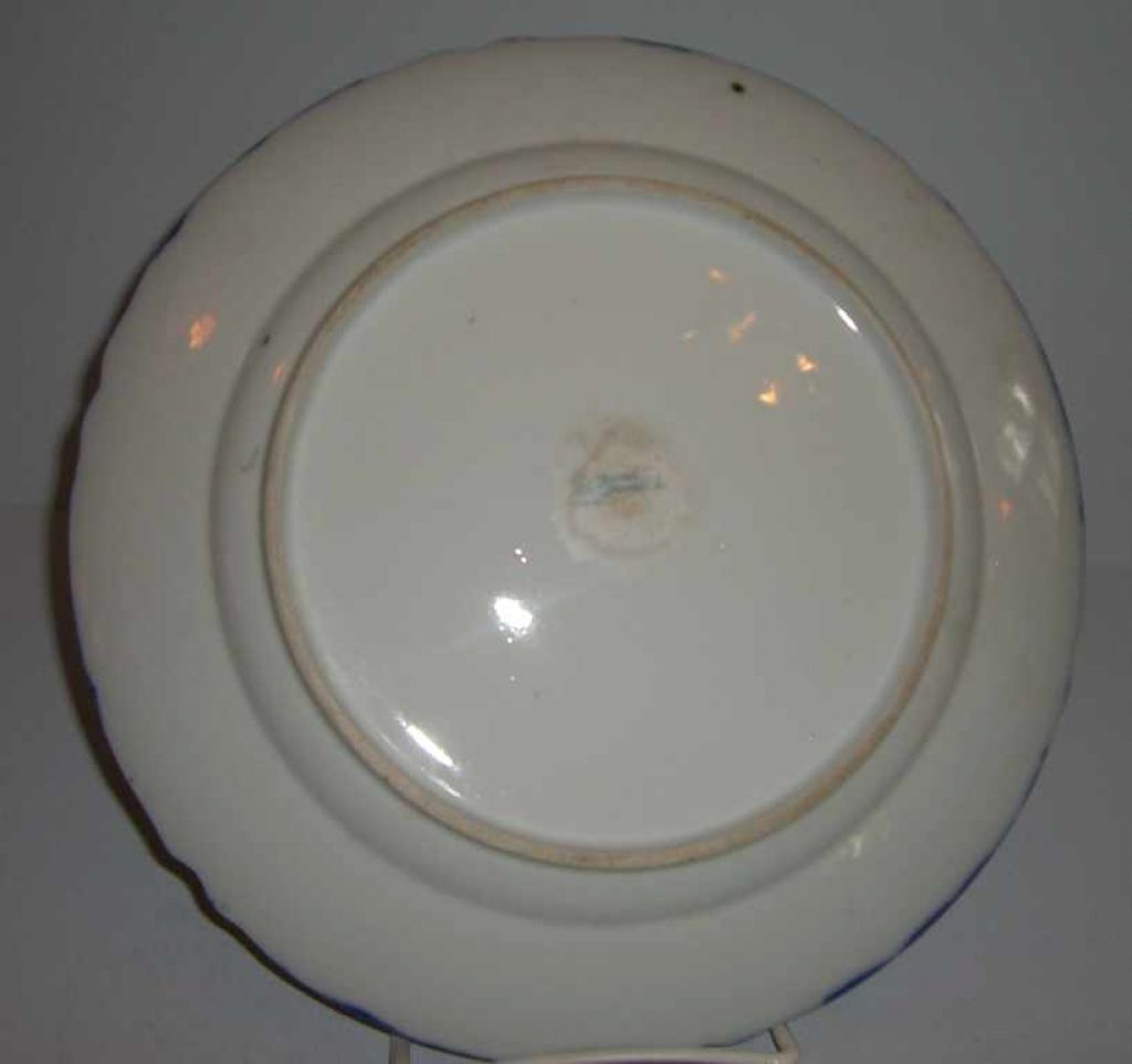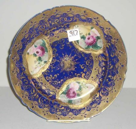 Hand painted Nippon plate with blue & gold trim & pink flowers - 10" round Hand painted Nippon plate with blue & gold trim & pink flowers - 10" round