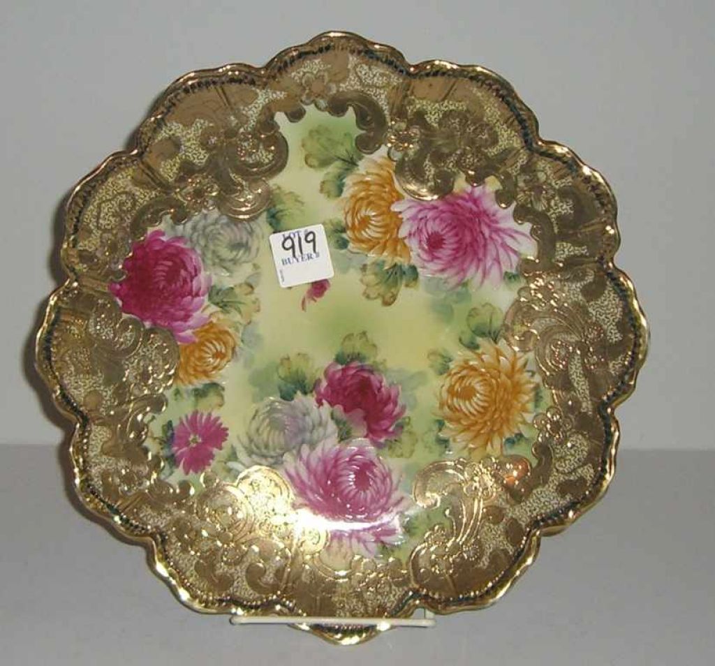 Hand painted scalloped Nippon plate gold trim - 11" round Hand painted scalloped Nippon plate gold trim - 11" round
