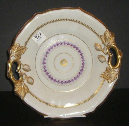 KPM double handle plate with gold trim - 10" round KPM double handle plate with gold trim - 10" round