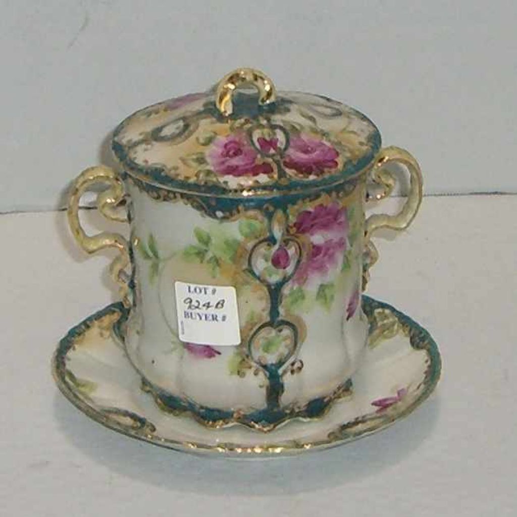 Nippon condensed milk holder with underplate. Roses. Nippon condensed milk holder with underplate. Roses.