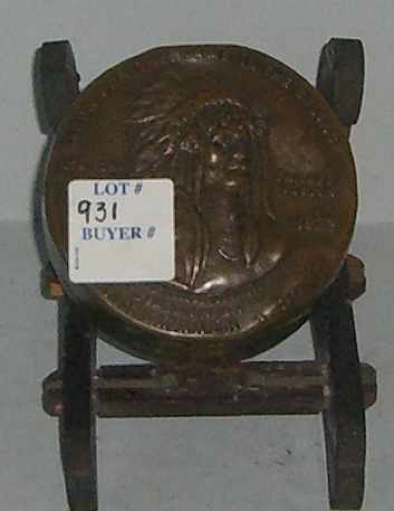 Brass advertising paperweight w/Indian chief - 1923 Brass advertising paperweight w/Indian chief - 1923