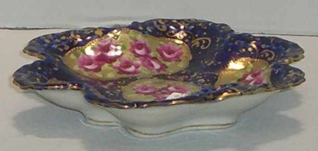 Nippon scalloped edge dish with open handle. Cobalt. Nippon scalloped edge dish with open handle. Cobalt.
