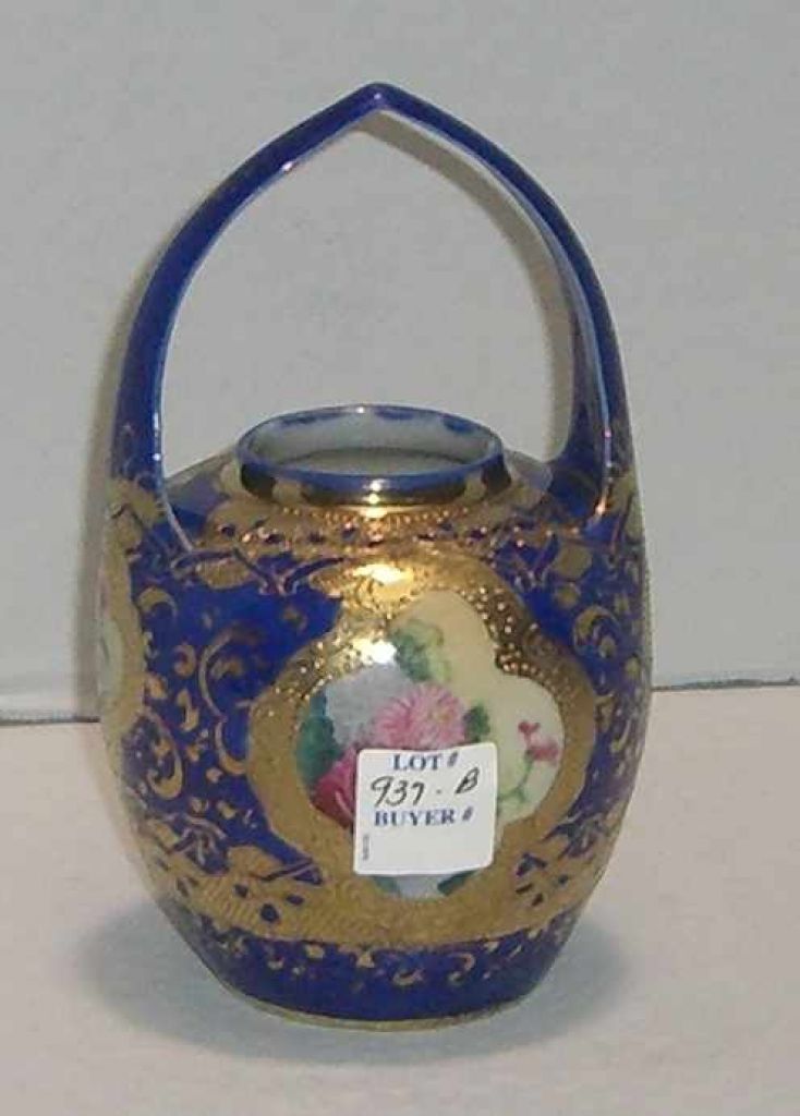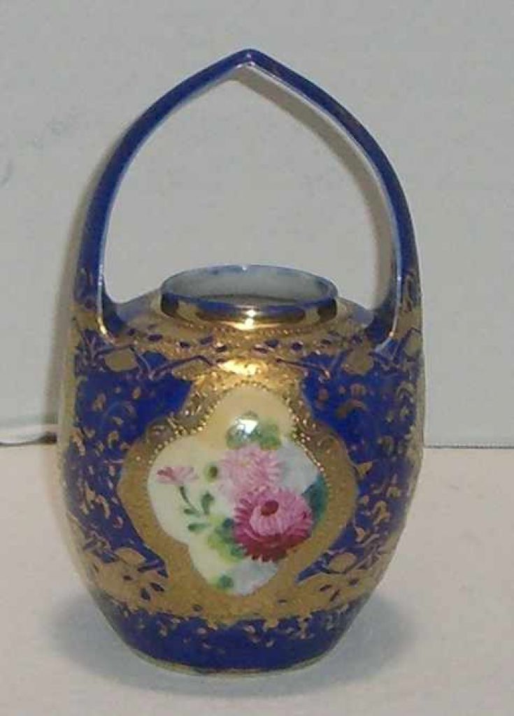Nippon 6" tall small basket. Cobalt with mums. Nippon 6" tall small basket. Cobalt with mums.
