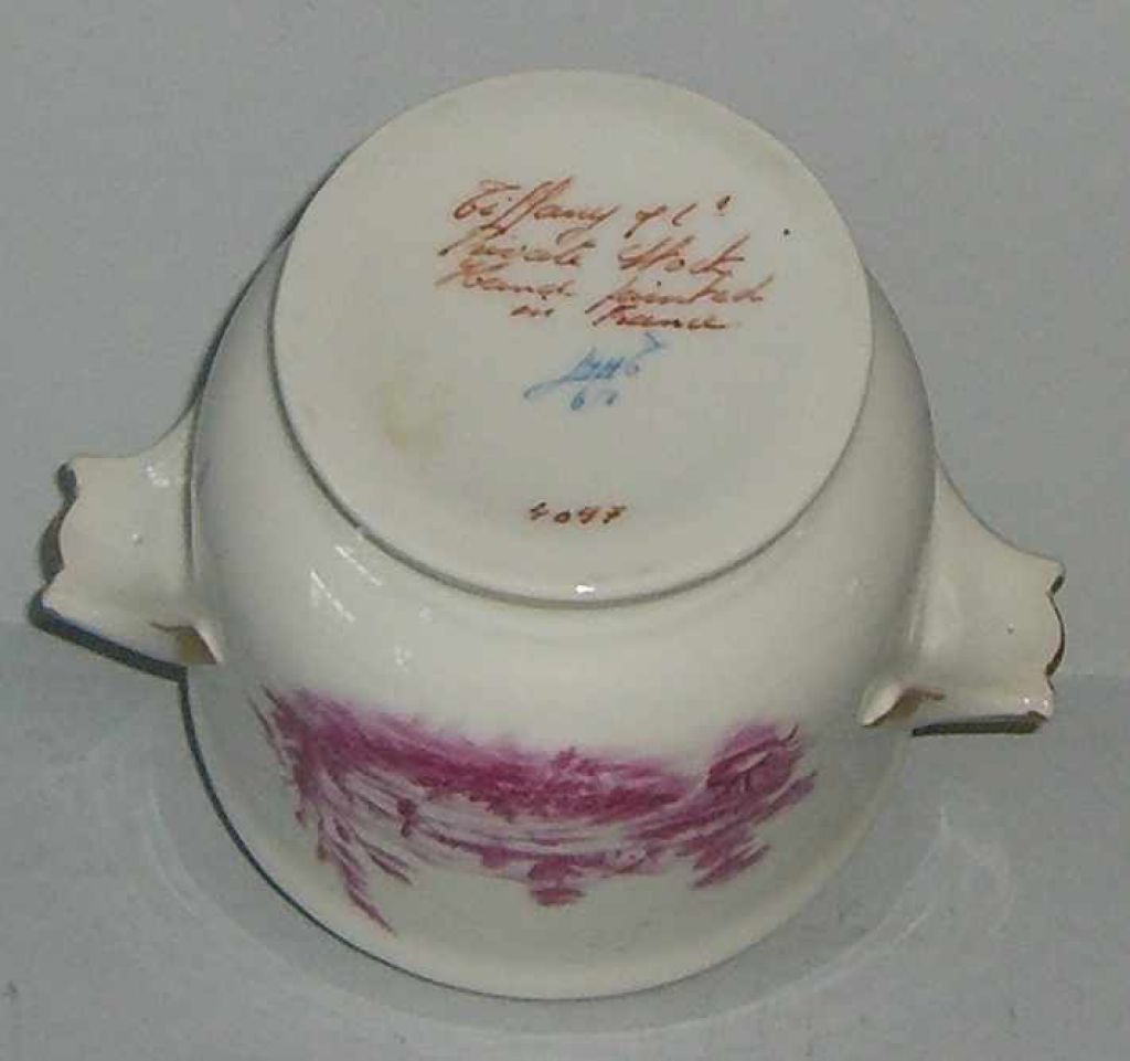 Tiffany and Co. small tab handled red scenic decorated vase Tiffany and Co. small tab handled red scenic decorated vase