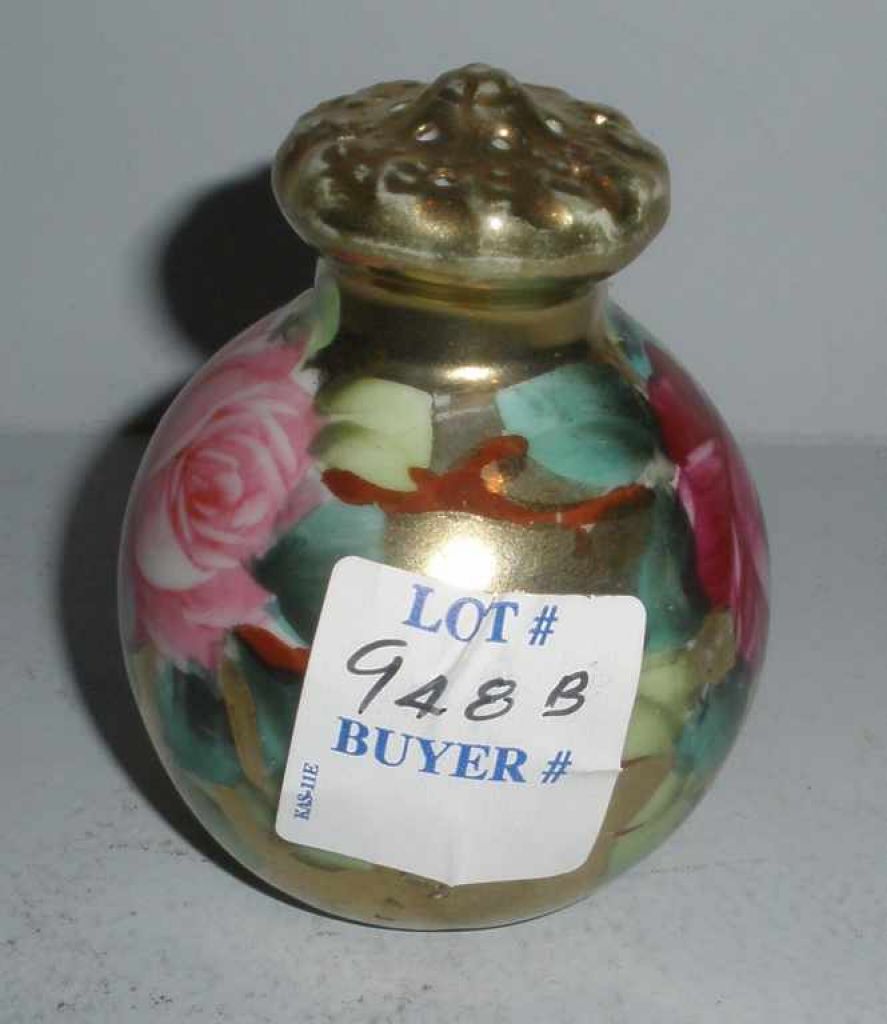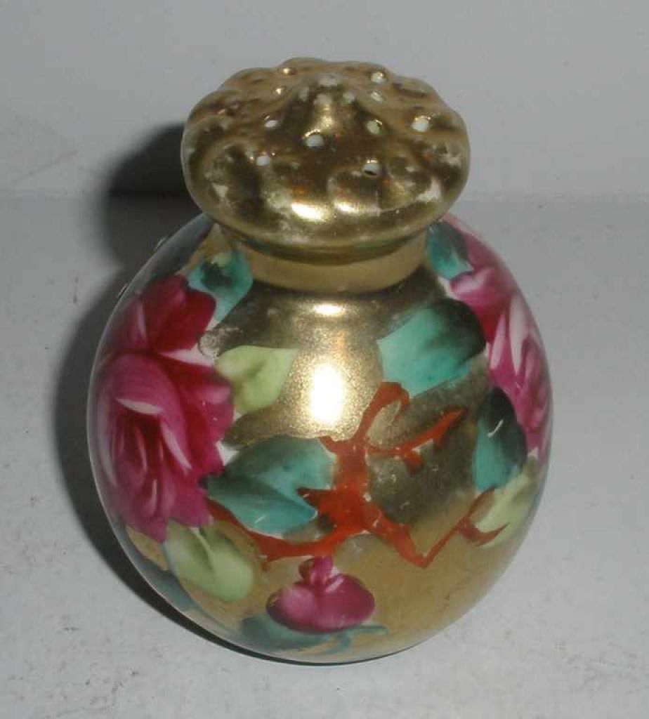 Nippon single salt shaker - 2 3/4" tall gold with roses Nippon single salt shaker - 2 3/4" tall gold with roses