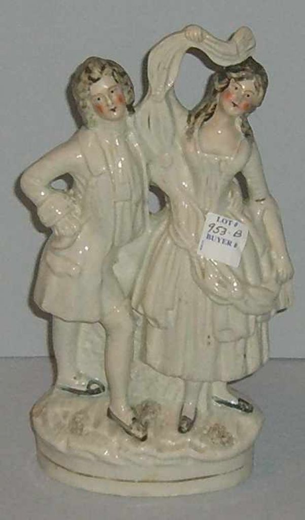 Staffordshire figure lady & man in white - 10" tall Staffordshire figure lady & man in white - 10" tall