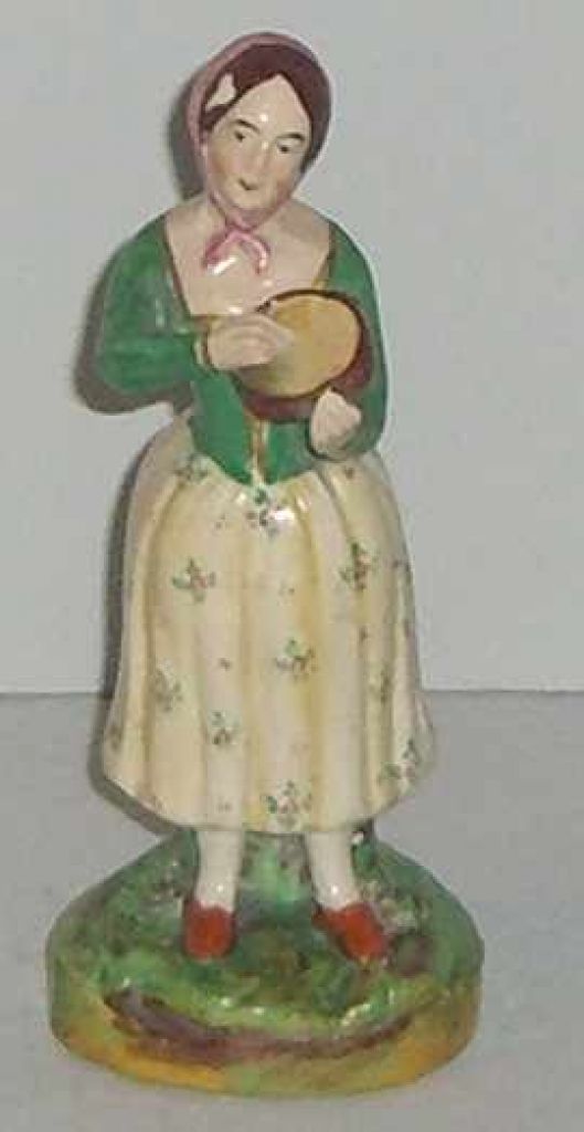 Staffordshire lady with tambourine - 8" tall Staffordshire lady with tambourine - 8" tall