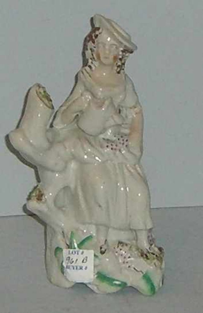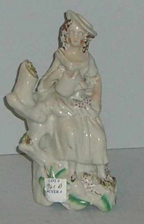Staffordshire maiden on stump with watering can - 8 1/2" tall Staffordshire maiden on stump with watering can - 8 1/2" tall