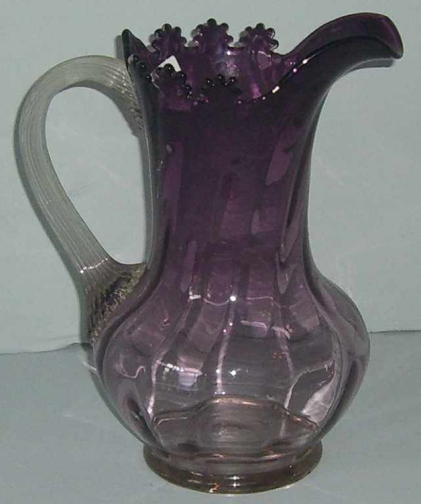 Amethyst pitcher w/applied clear glass handle - 10 1/2" tall Amethyst pitcher w/applied clear glass handle - 10 1/2" tall
