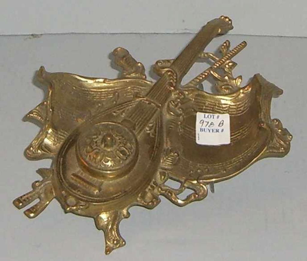 4188 Brass Ink Well in Form of Madoline and Music Sheet