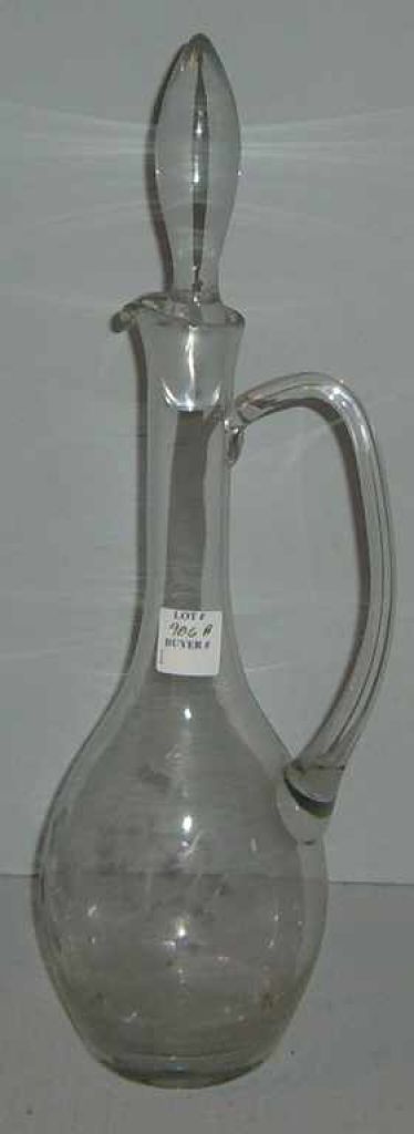 Floral Engraved, Handled Glass Decanter - 17 1/2" tall Floral Engraved, Handled Glass Decanter - 17 1/2" tall