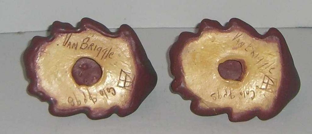 Pair of Ann Van Briggle Pottery Candlesticks, Colorado Springs, Maroon and Green - 6 1/4" across. Van Briggle Pottery was founded by Artus and Anne Van Briggle in 1900 in Colorado Springs, Colorado. Van Briggle began producing art pottery in 1901. Pair of Ann Van Briggle Pottery Candlesticks, Colorado Springs, Maroon and Green - 6 1/4" across. Van Briggle Pottery was founded by Artus and Anne Van Briggle in 1900 in Colorado Springs, Colorado. Van Briggle began producing art pottery in 1901.