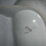 Large Oyster Shell Shaped Victorian Divided, Handled, Dish, Blue Background w/Floral Decoration Interior - 13" length x 11" width Large Oyster Shell Shaped Victorian Divided, Handled, Dish, Blue Background w/Floral Decoration Interior - 13" length x 11" width