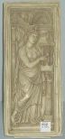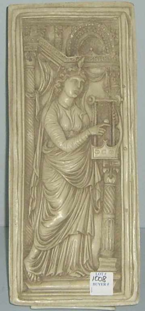White plaster wall plaque scroll medieval lady. White plaster wall plaque scroll medieval lady.