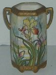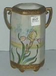 4259 Hand painted double handled floral design Nippon vase w/raised decoration and gold beading