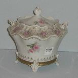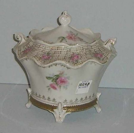 4277 RS Prussia Fluted Floral Biscuit Jar, Decorated w/Pink Roses and Stems