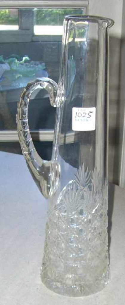 Cut glass, handled, ewer - 13 3/8" tall Cut glass, handled, ewer - 13 3/8" tall