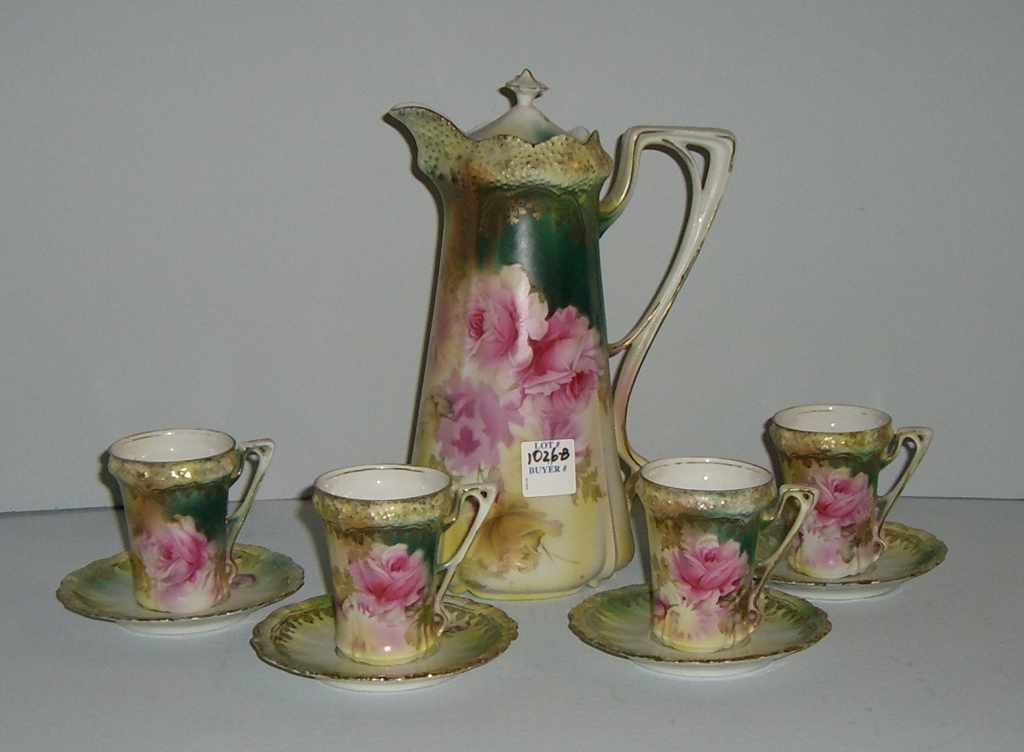 RS Prussia Chocolate Set, Pot, 4 Cups, 5 Saucers - 9 1/2" pot. RS Prussia Chocolate Set, Pot, 4 Cups, 5 Saucers - 9 1/2" pot.