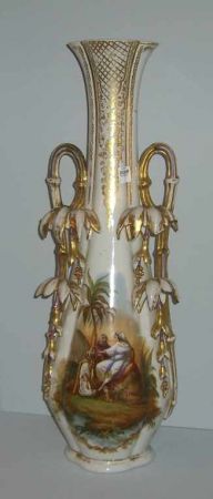 4284 Old Paris Floor Vase w/Unusual Arabic Portrait w/Applied Bell Flowers