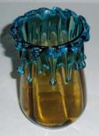Amber art glass vase w/blue dripping - 5" tall Amber art glass vase w/blue dripping - 5" tall
