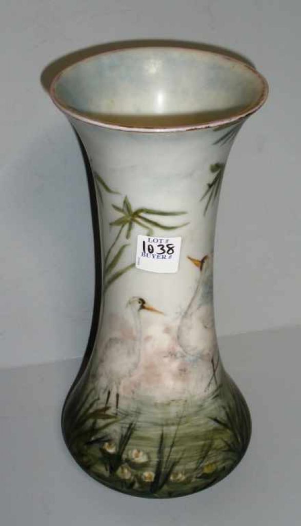 Hand painted France vase with storks - 5" round by 11" tall Hand painted France vase with storks - 5" round by 11" tall