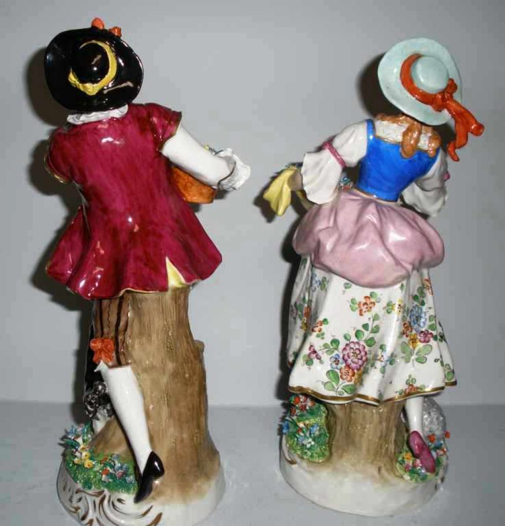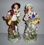 Pair of Sitzendorf Dresden large man & woman figural with flowers - 11" tall Pair of Sitzendorf Dresden large man & woman figural with flowers - 11" tall