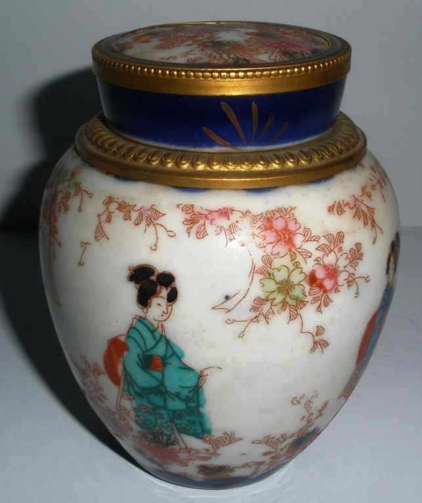 Oriental Ginger Jar, Raised Floral Decoration, Bronze Fittings - 3 3/4" tall Oriental Ginger Jar, Raised Floral Decoration, Bronze Fittings - 3 3/4" tall