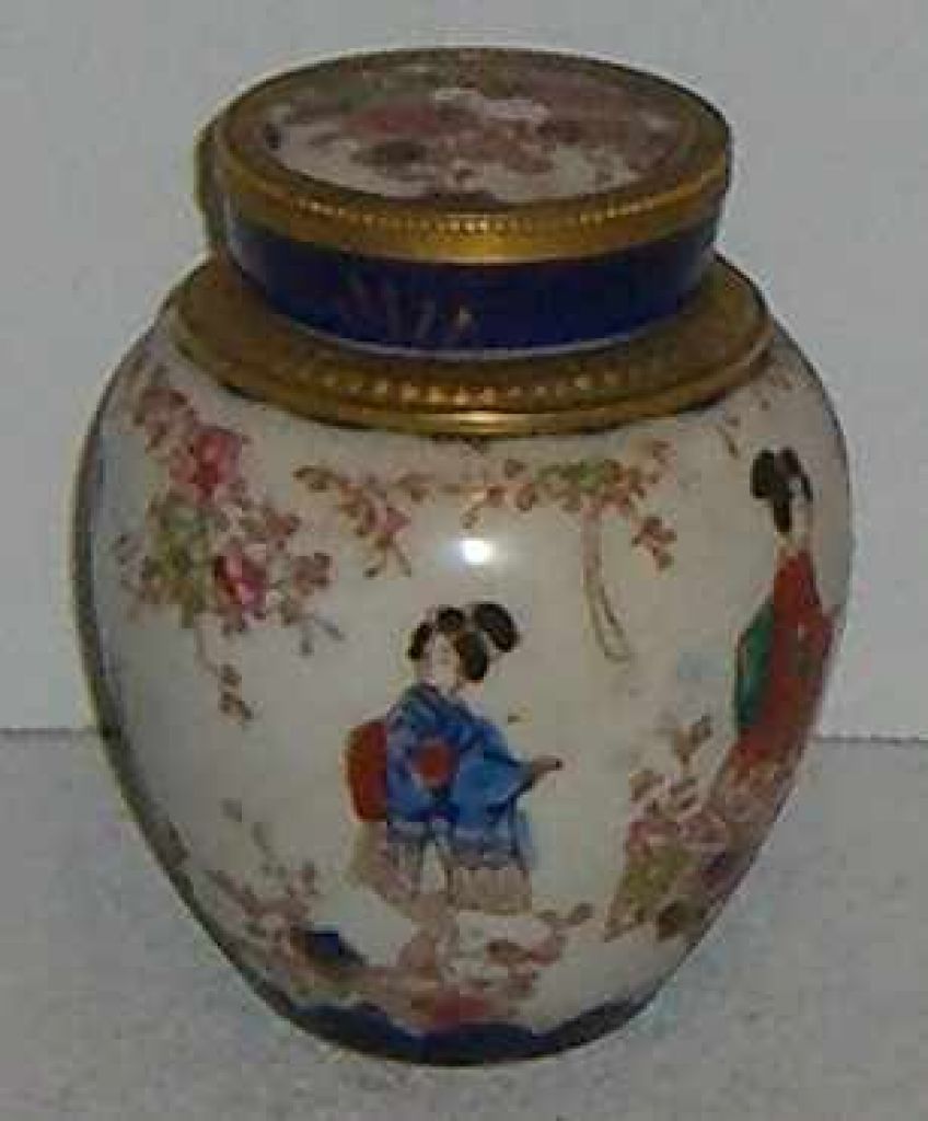 4337 Oriental Ginger Jar, Raised Floral Decoration, Bronze Fittings