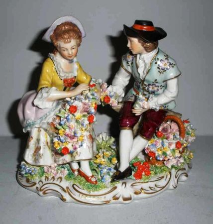 Dresden Sitzendorf man & lady figure gathering flowers - 5" tall Dresden Sitzendorf man & lady figure gathering flowers - 5" tall