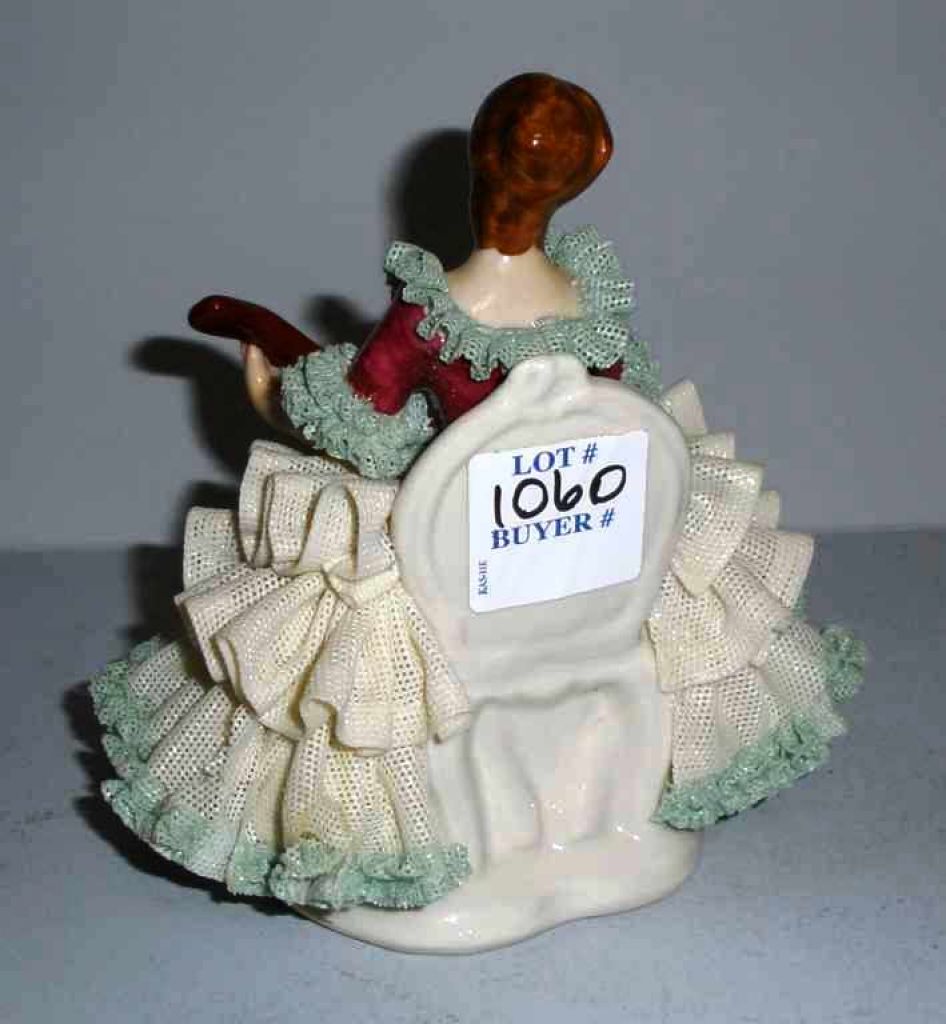 Dresden lady playing guitar sitting in chair - 5" tall Dresden lady playing guitar sitting in chair - 5" tall