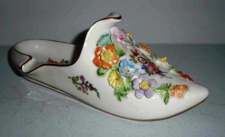 Dresden Victorian shoe with flowers - 7" long by 2" wide by 2" tall Dresden Victorian shoe with flowers - 7" long by 2" wide by 2" tall