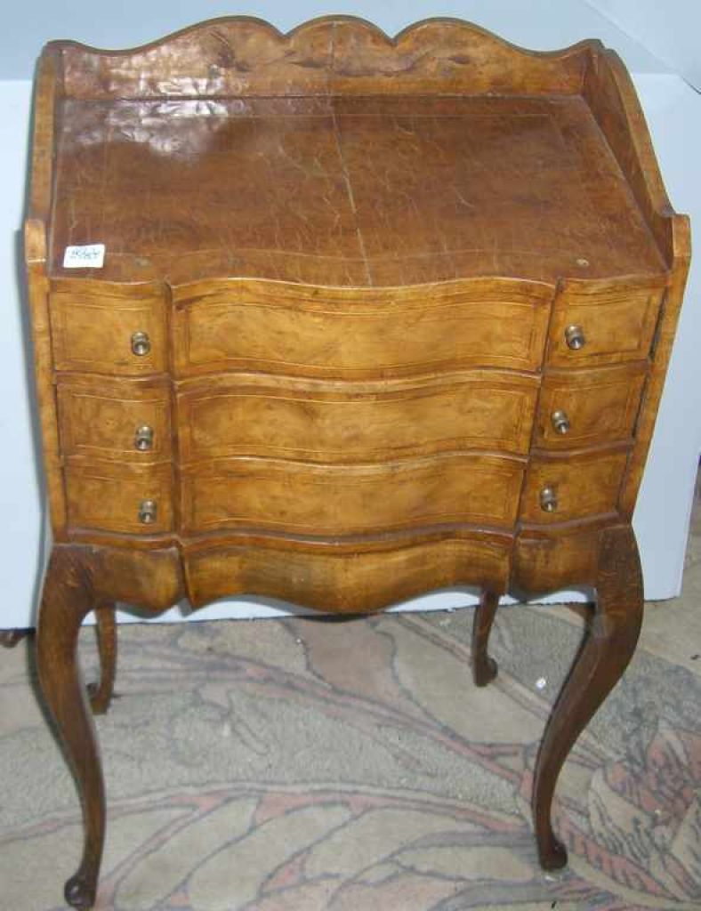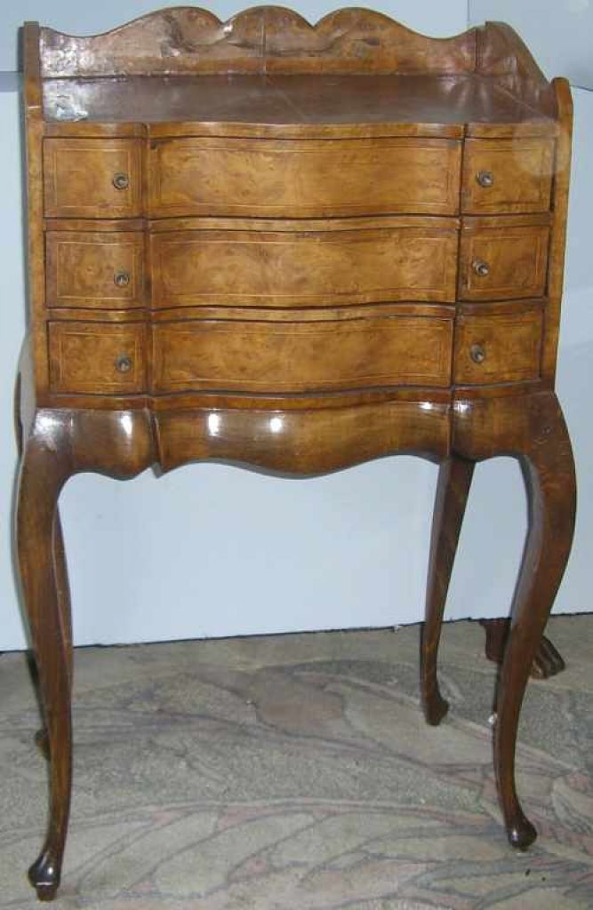 4357 Oyster burl three drawer stand with Queen Anne feet