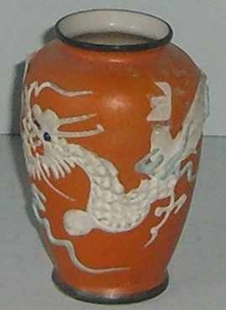 Small Japan orange vase with dragons - 2" round by 3 1/2" tall Small Japan orange vase with dragons - 2" round by 3 1/2" tall