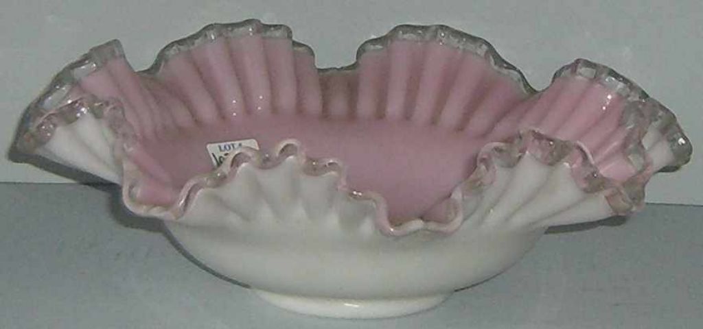 4368 Pink & white brides bowl with clear ruffle