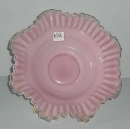 Pink & white brides bowl with clear ruffle - 9" round by 3" tall Pink & white brides bowl with clear ruffle - 9" round by 3" tall