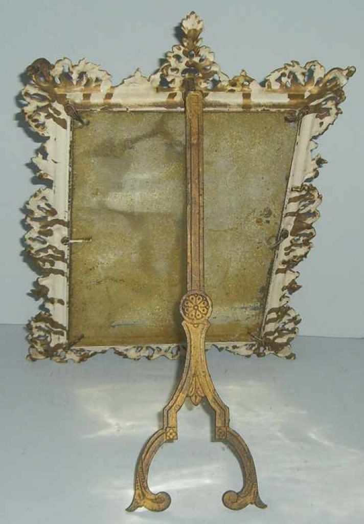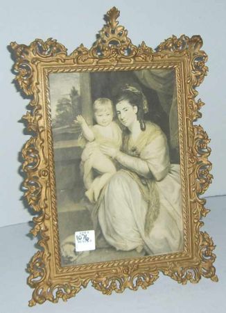 4372 Brass ornate stand up picture frame with print of lady & baby