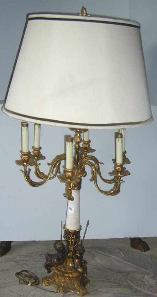 Large seven light gilded table lamp with 3 cherubs & alabaster support shaft - 42" tall Large seven light gilded table lamp with 3 cherubs & alabaster support shaft - 42" tall