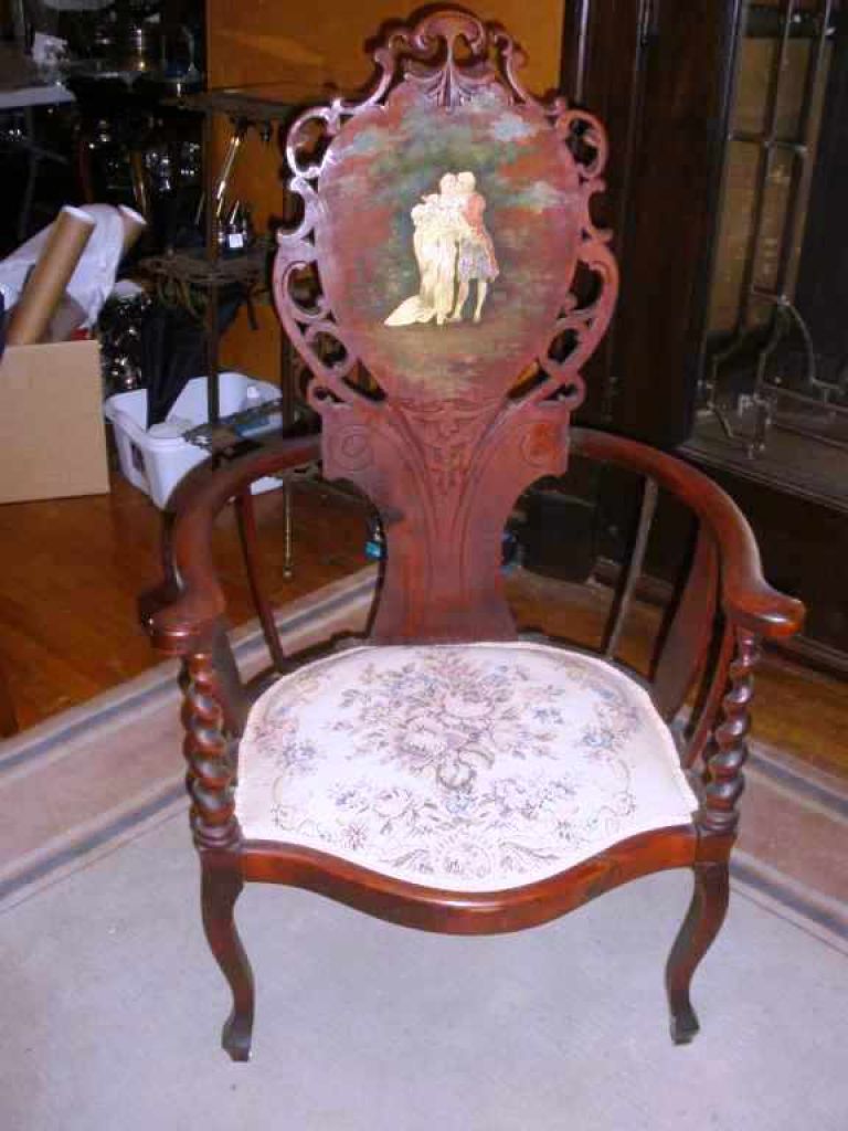 Arm chair with figural scene decorated on back splat Arm chair with figural scene decorated on back splat