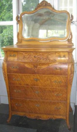 Large Horner maple 5 drawer tall chest of drawers with mirror - 72" tall by 39" wide by 26" deep Large Horner maple 5 drawer tall chest of drawers with mirror - 72" tall by 39" wide by 26" deep