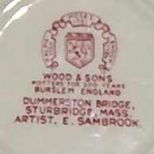 Woods & Son, Burslem, England Small Plate w/Picture of The Dummerston Bridge in Sturbidge, Massachusetts, Artist: E. Sambrook - 4 3/8" diameter Woods & Son, Burslem, England Small Plate w/Picture of The Dummerston Bridge in Sturbidge, Massachusetts, Artist: E. Sambrook - 4 3/8" diameter