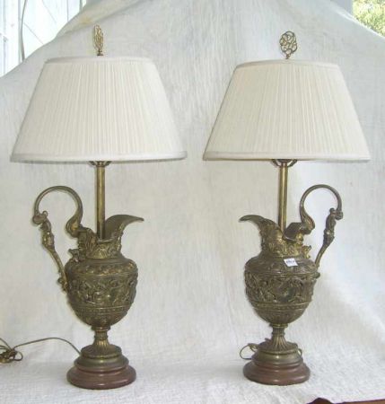 4404 Pair of large ewer shaped bronze reposse table lamps