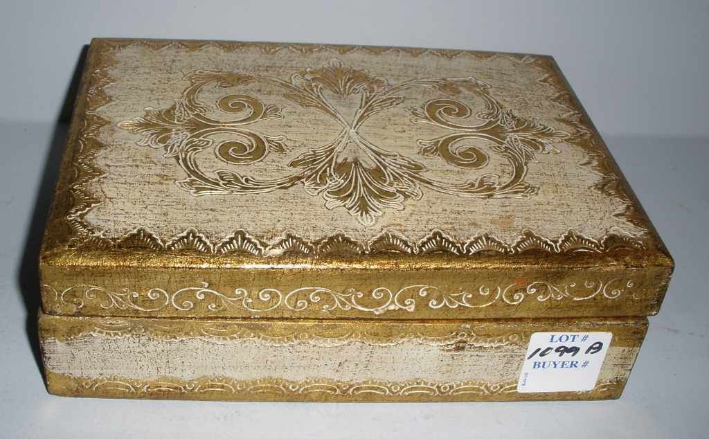 4416 Italian Wooden Box, Gold Gilt Decoration, Hinged Top