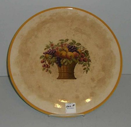 Pottery Trivet, Off White Background, Basket of Fruit Center Decoration. Signed - 12" diameter Pottery Trivet, Off White Background, Basket of Fruit Center Decoration. Signed - 12" diameter