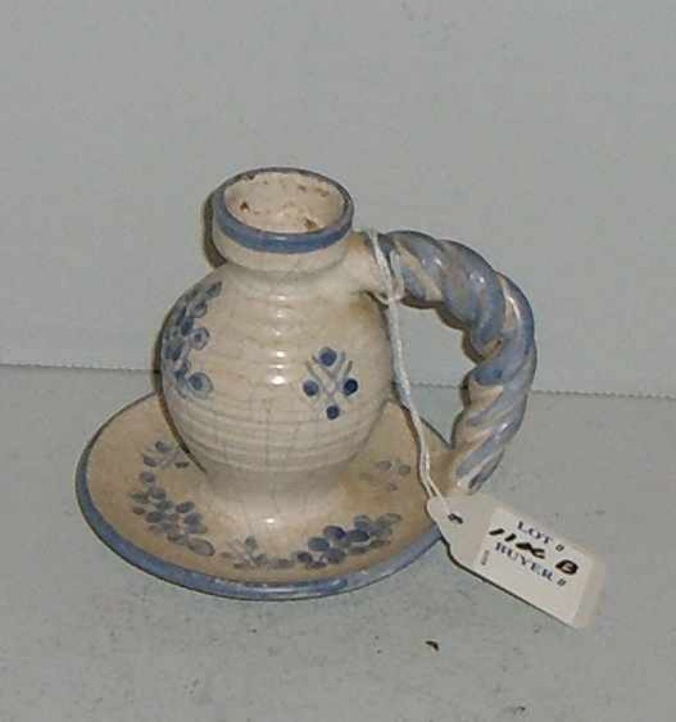 Blue and White Decorated Candlestick Holder w/Rope Handle. Blue and White Decorated Candlestick Holder w/Rope Handle.