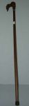 4425 Wooden Walking Cane w/Carved Dogs Head Holding Fowl in Mouth