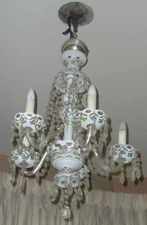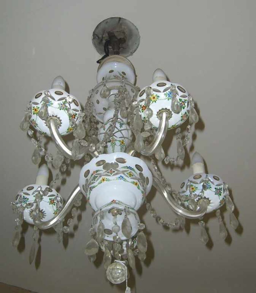 Bohemian 5 Light Chandelier w/Enameled Light Glass Cut to Clear Bohemian 5 Light Chandelier w/Enameled Light Glass Cut to Clear